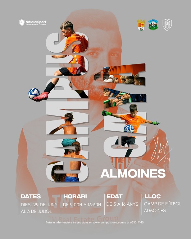 A Jose Luis Gayà, jugador y capitán del Valencia C.F.,le complace anunciar que Almoines vuelve con el Campus Gayà, para niños y niñas con una edad comprendida entre 5 y 16 años, donde podrán disfrutar de unas semanas inolvidables, llenas de fútbol, amig@s y las actividades más divertidas.